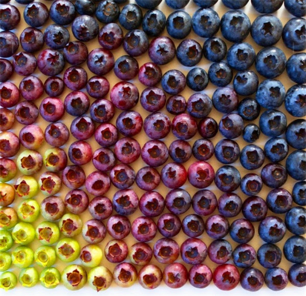 Loại quả nào thì cũng có quả xanh, quả chín mà màu sắc của chúng cũng không giống nhau. Và đây chính là các cấp độ chín của trái việt quất. Điều quan trọng tác giả là ai mà lại có thể ngồi tỉ mì xếp như vậy.