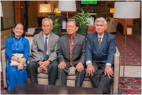Chúng tôi chụp hình lưu niệm với 2 Thầy Đào hữu Anh và Vũ quí Đài tuần tự như các cặp bạn khác trong phòng tiếp tân của khách sạn Sheraton sáng 27/06/2015.