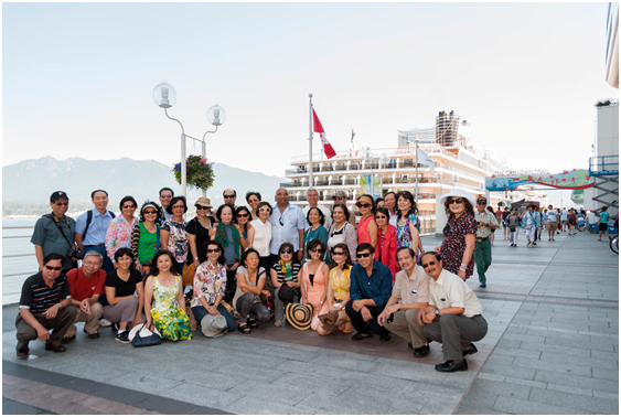 Toàn thể khách tham gia gồm các Thầy, các đàn anh và các bác sĩ YKSG 68-75 cùng các nha sĩ NKSG 68-73 chụp hình lưu niệm tại bến cảng Vancouver.